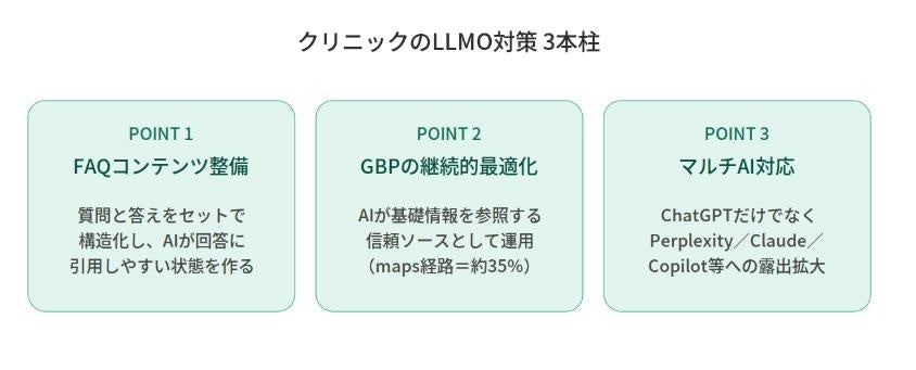 ※本調査の全体数値(121院ベース)からは、当社がLLMO対策を実施している2院を除外し、対策未実施の母集団として集計しています。また「4. LLMO対策実施クリニックの事例」の当該クリニックは仮称で記載しています。