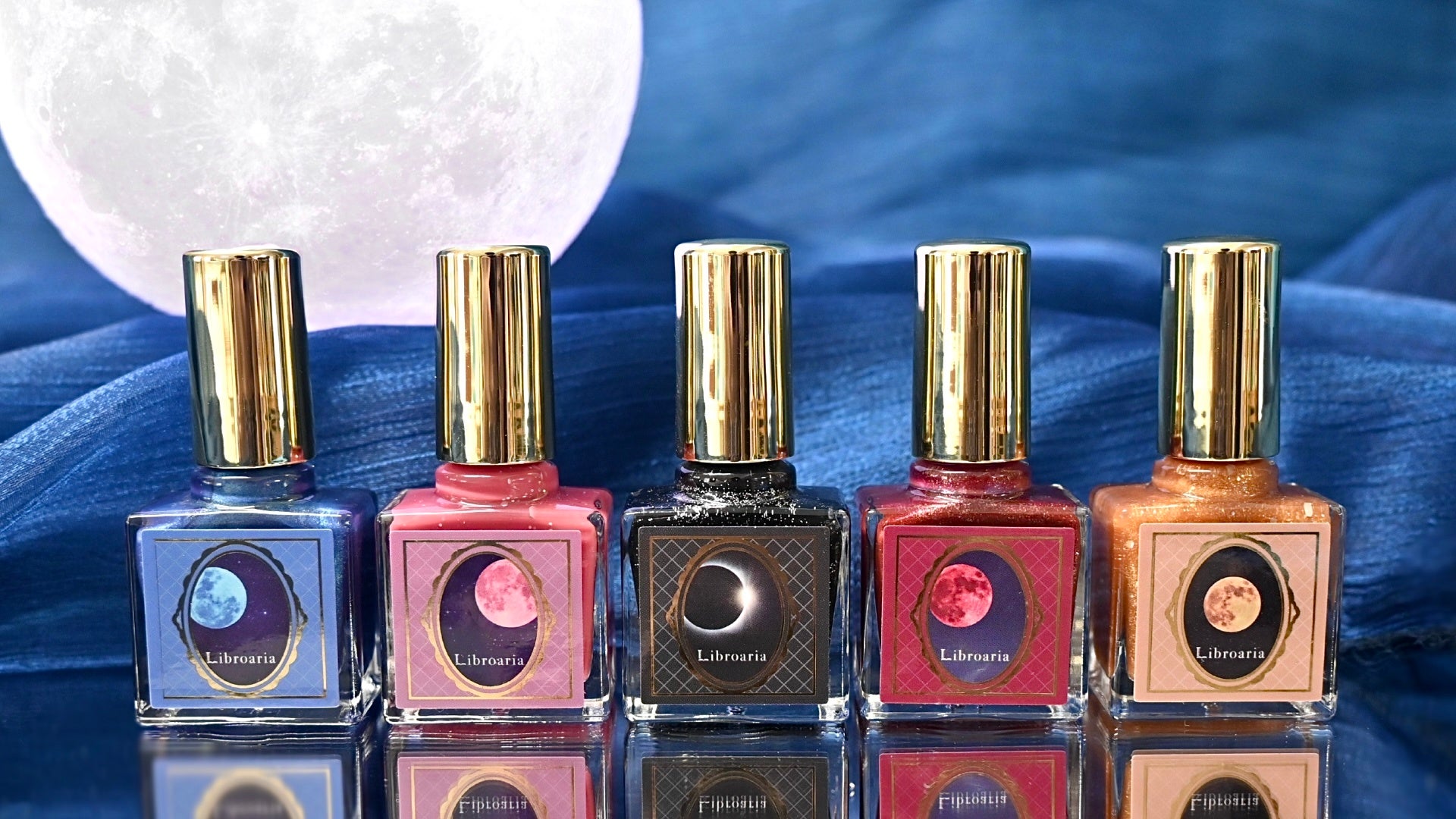 出版社生まれのコスメブランド「Libroaria」(リブロアリア)から、「月の輝き」にインスパイアされたネイルポリッシュ、Moon Collectionが登場。神秘的な輝きを放つ5種のカラー。