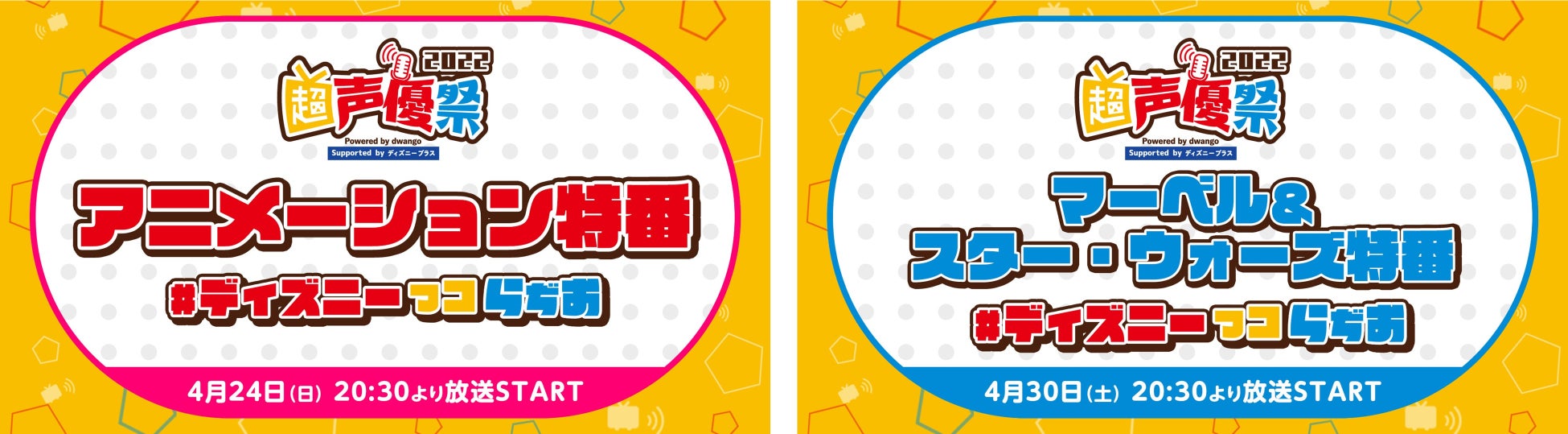 株式会社ドワンゴ(本社:東京都中央区、代表取締役社長:夏野剛)は、同社が2022年4月23日(土)~30日(土)の計8日間にわたりネット開催する日本最大級の“声優”特化型イベント「超声優祭2022 Powered by dwango , Supported by ディズニープラス」の情報を発表しました。