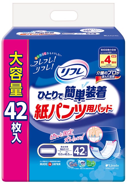 「リフレ ひとりで簡単装着紙パンツ用パッド」をリニューアル発売