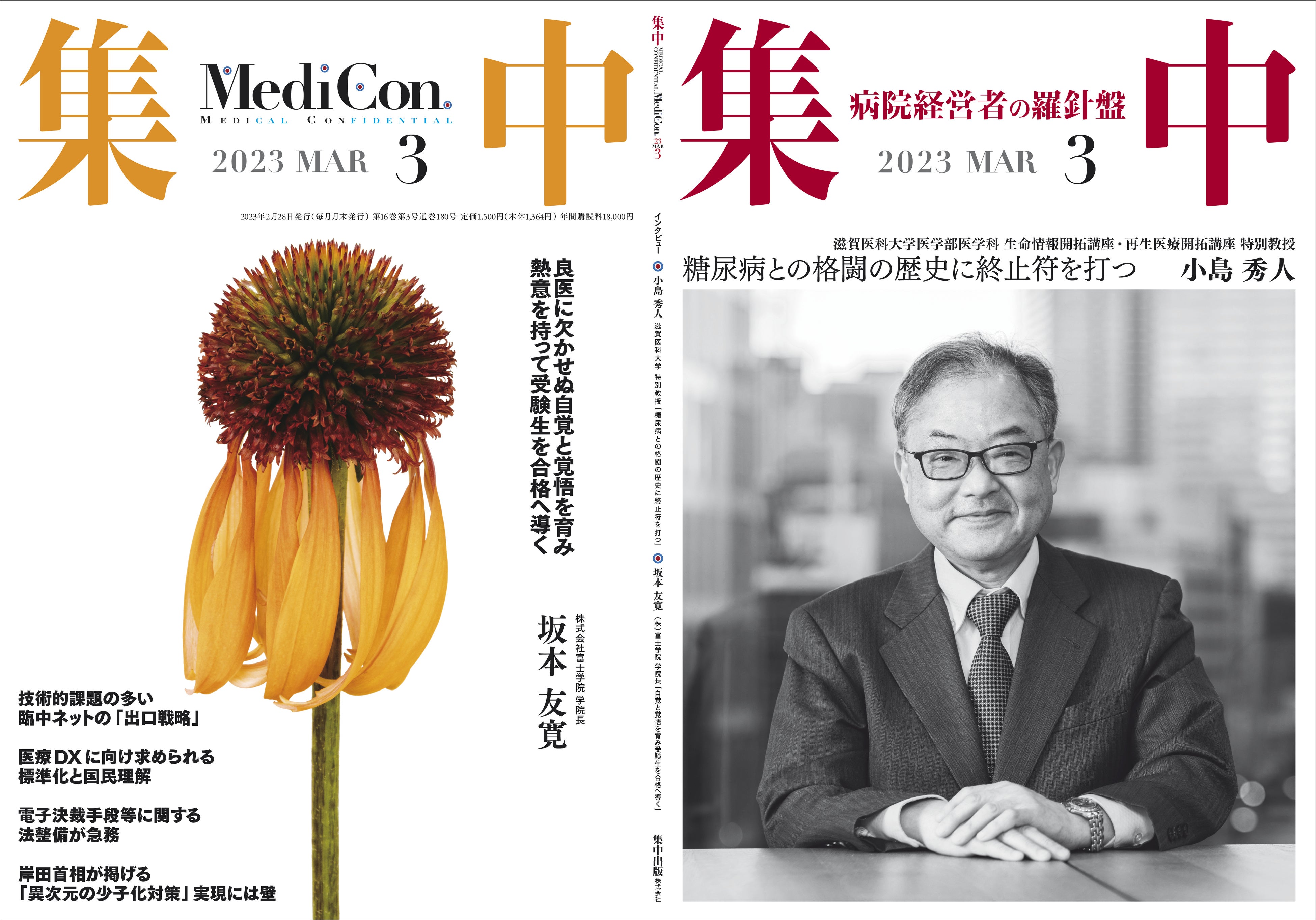 病院経営者・理事長・院長を始め、医師など医療従事者に特化した読者層を誇り、病院の経営戦略や厚生行政、医薬品・医療機器メーカーの動向から国内外の政治や経済、社会・文化の情報まで網羅した総合医療情報誌です。定期購読による直販方式の為、一般の書店ではお求めになれません。