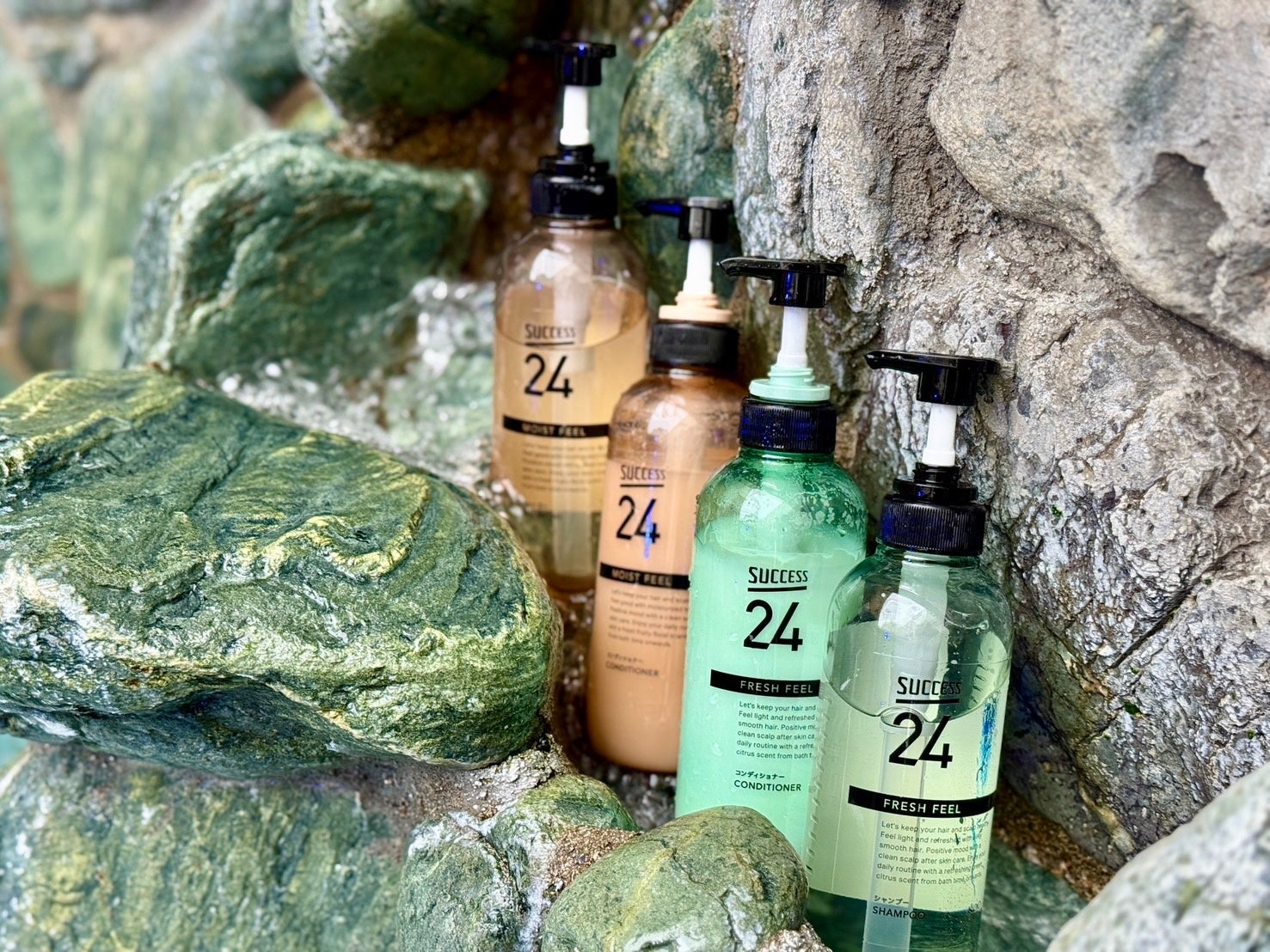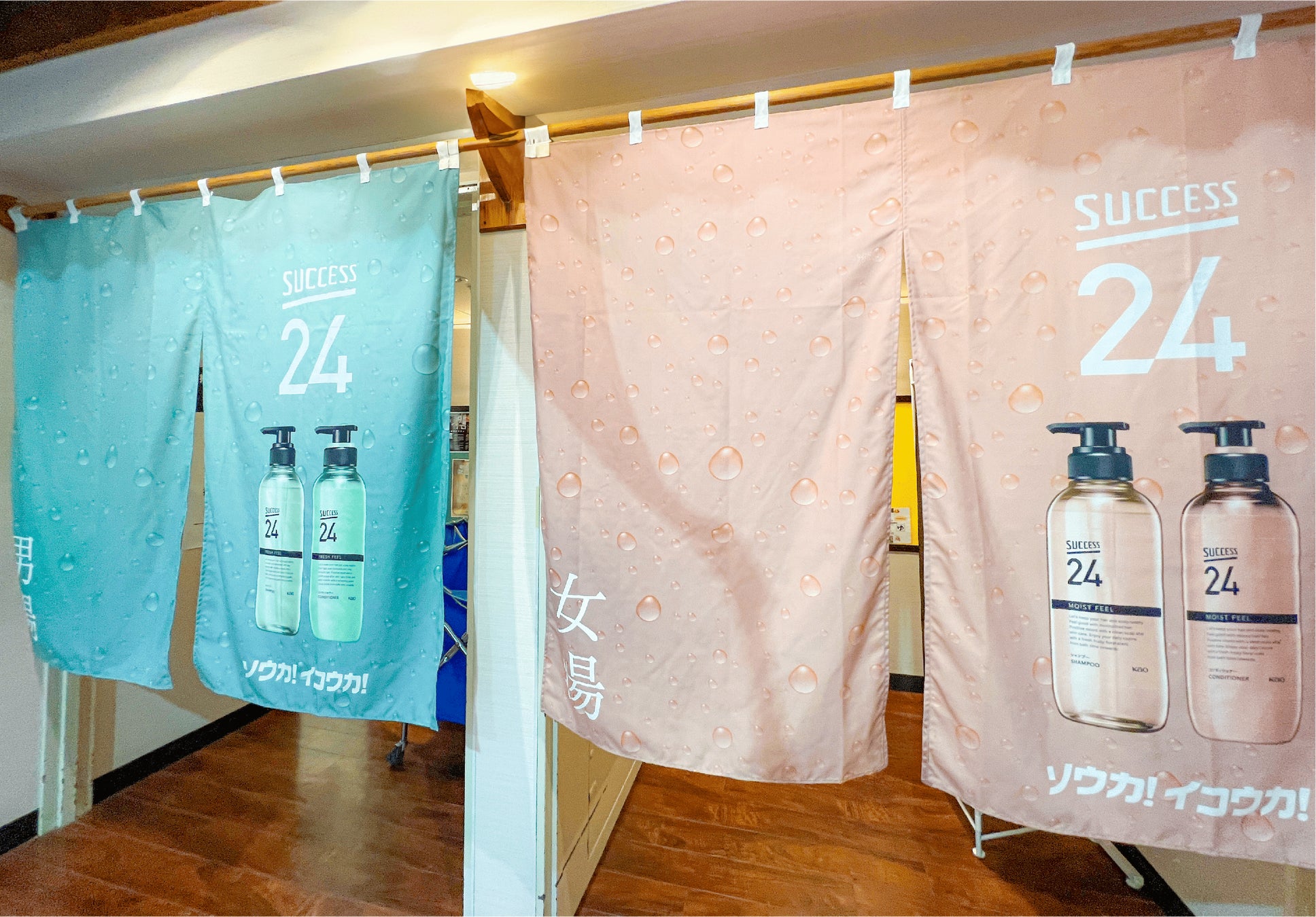 両施設にて、頭皮のスキンケア発想「サクセス24 シャンプー&コンディショナー」と「サクセス髪を育てるチャージエッセンス【医薬部外品】」の商品体験や、サクセスをイメージしたオリジナルアロマを使ったロウリュの体験で爽快なサウナ体験をお届けします。