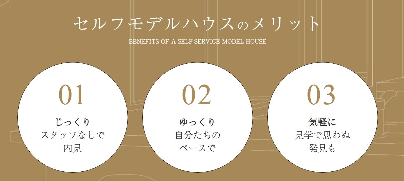 「モデルハウスに行くなら、まずは自分たちのペースで間取りや広さを確認したい」というお客様の声にお応えし、スタッフの案内なしで見学できる「セルフモデルハウス」を導入いたしました。