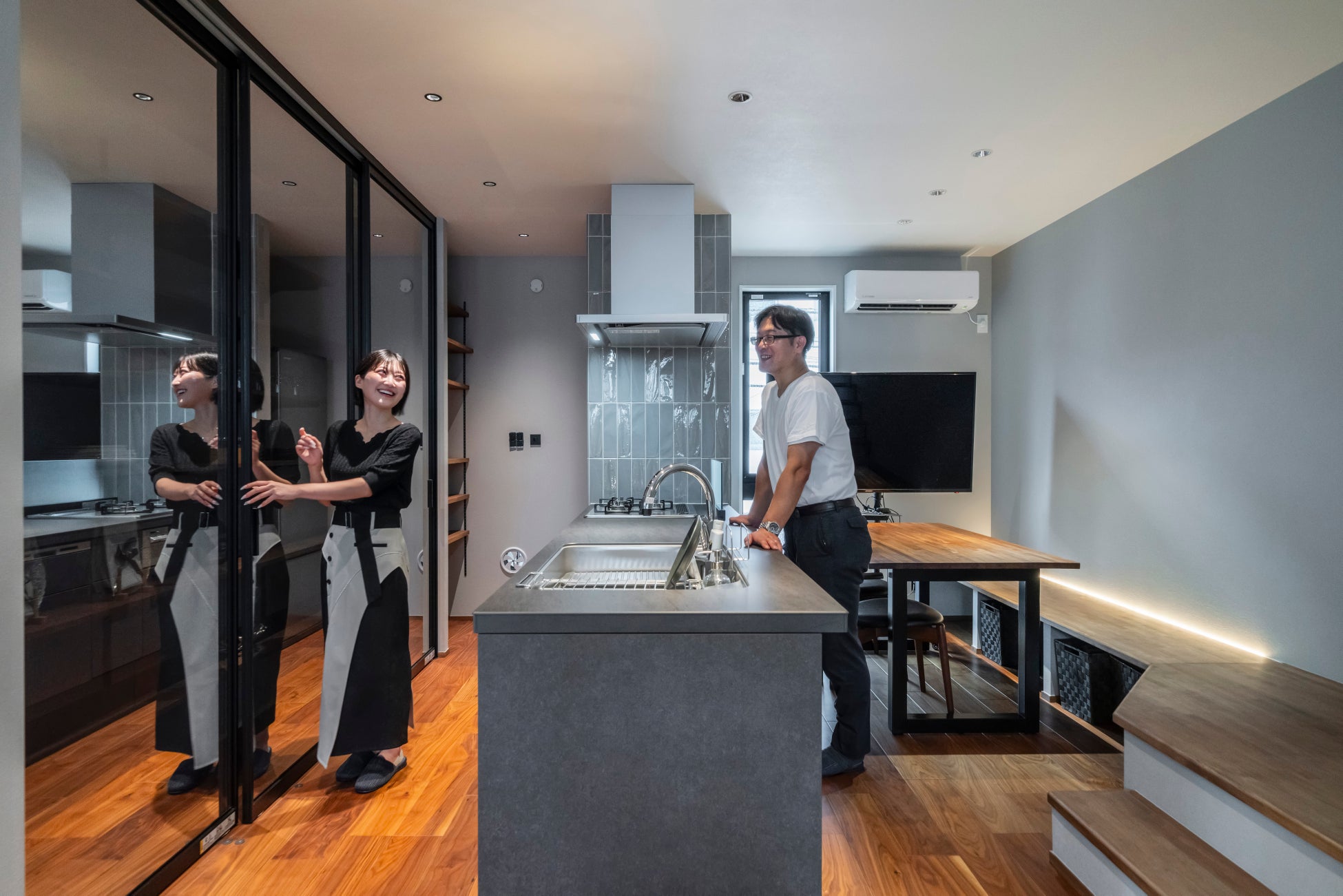 限られたスペースを立体的に活用し、半地下部分の上部を「ロフト」として活用。LDKにはアイランドキッチンを配置し、単身者が開放的でスタイリッシュな暮らしができる賃貸空間で、家主様が住みながら収益を得るモデルを実現。