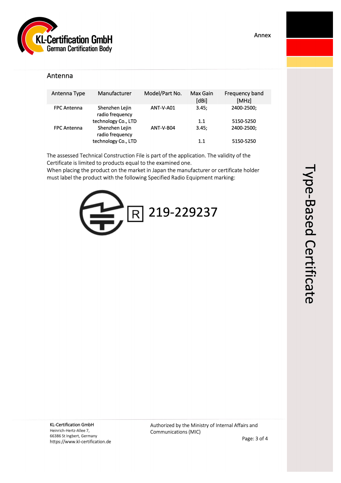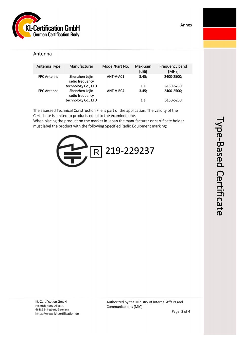 - 技術基準適合証明「TELEC認証」取得済み番号:219-229237