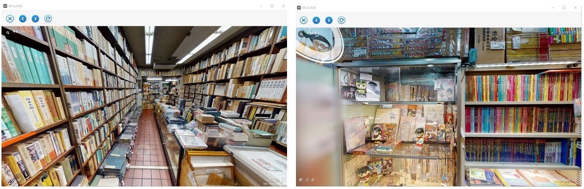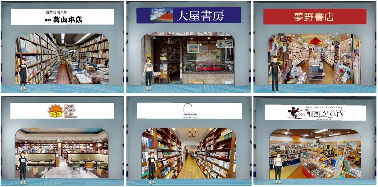 実際の店舗を360度カメラで撮影したバーチャルショップを、メタバースの商業施設に集積し、古書店巡りをお楽しみいただけます。