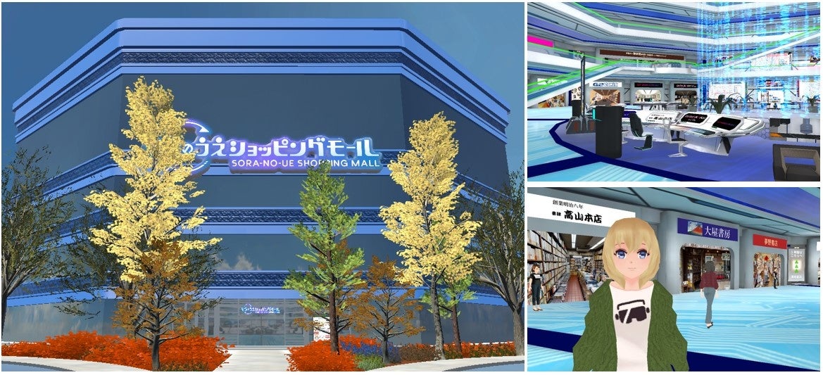 そらのうえショッピングモールとは、パソコンやスマートフォンからアバターになって、モール内のバーチャルショップを回遊することが出来るメタバースの商業施設です。