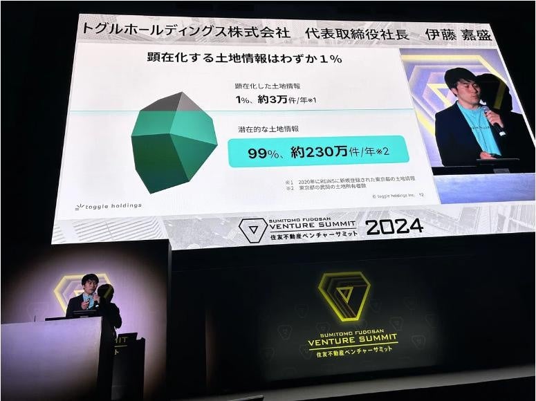 トグルホールディングス株式会社(本社:東京都、代表取締役社長:伊藤嘉盛)は、2024年10月29日に開催された「住友不動産ベンチャーサミット2024」において、ピッチコンテストで見事優勝を果たしました。当社は、テクノロジーを活用し「不動産」「建築」「金融」の3つの業界を統合した産業インフラを構築し、不動産流通における根本的な課題解決に取り組んでいます。