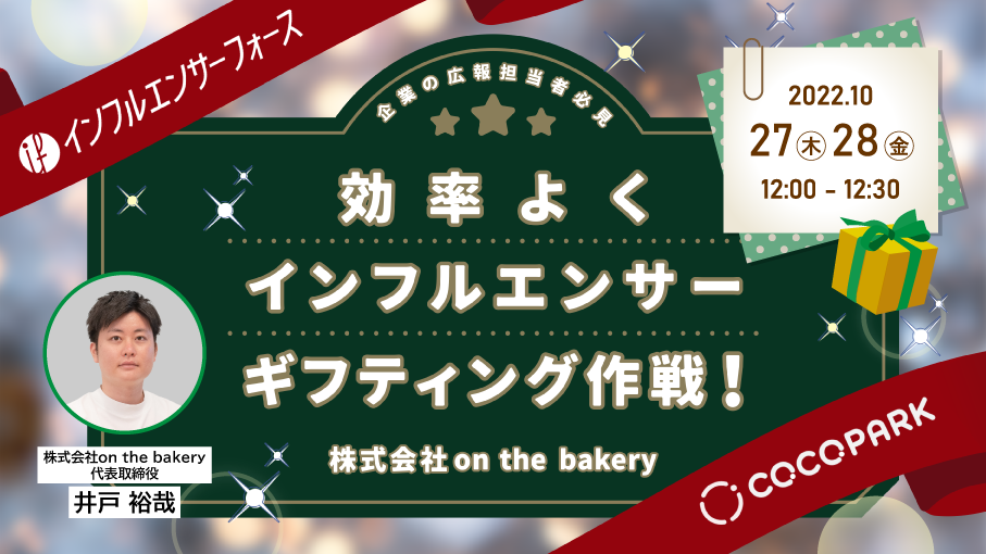 【広報担当者必見】効率よくインフルエンサーギフティング作戦!~ランチタイムセミナー 10/27・28開催~