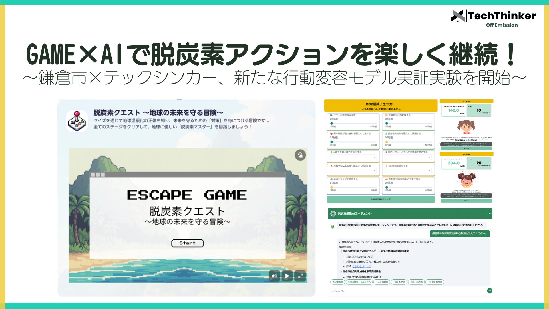 GAME×AIで脱炭素アクションを楽しく継続!鎌倉市×テックシンカー、新たな行動変容モデル実証実験を開始