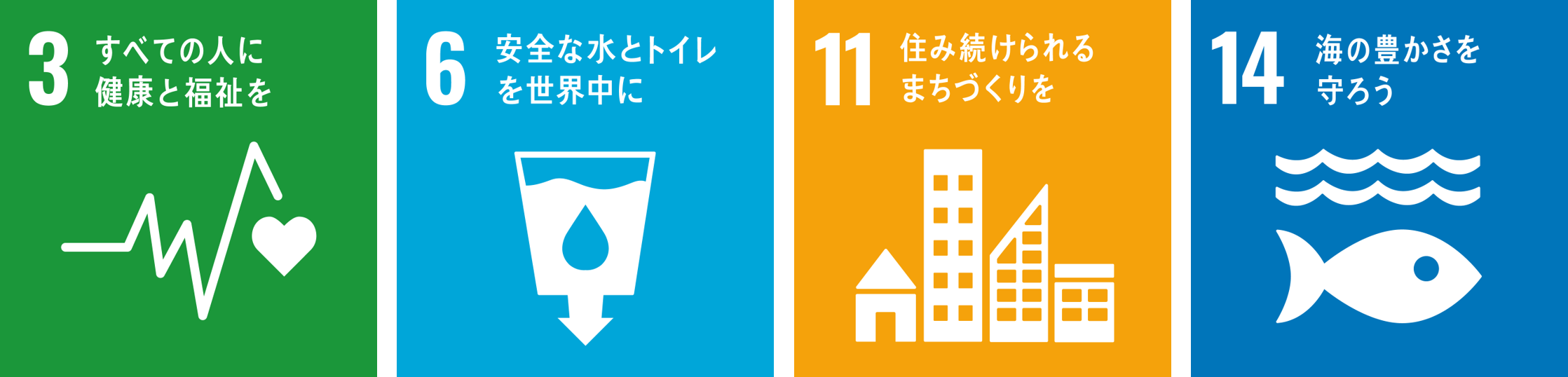 サイエンスグループはファインバブル技術のリーディングカンパニーとして、自社開発製品の販売のみならず、医療や介護、工業など幅広い分野で共同研究を行っております。これらには、2030年の国連アジェンダであるSDGsを達成するという目標があります。当社独自の「人と地球に優しい」ファインバブル技術を世界に普及させることで、持続可能な社会作りに貢献します。