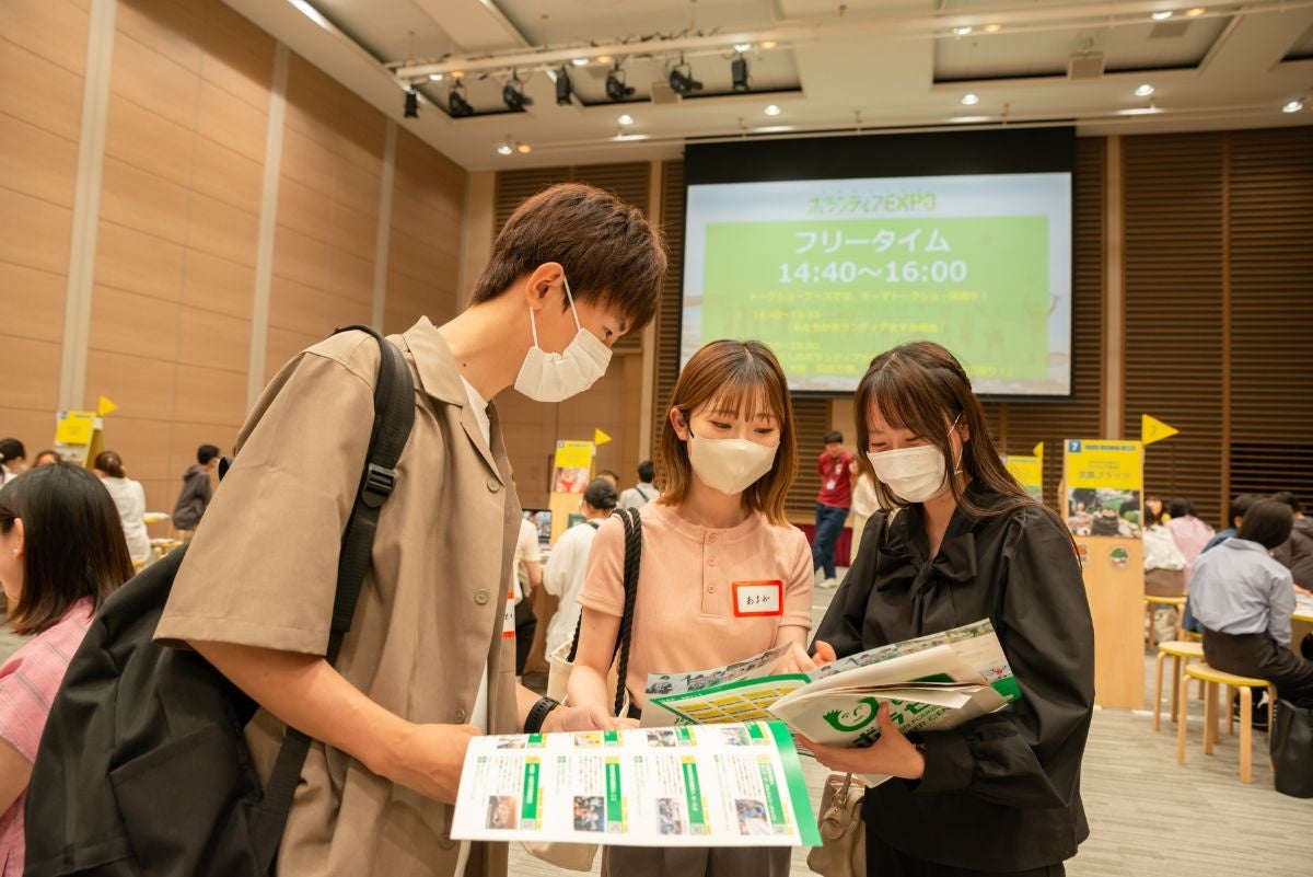 会場には、環境問題、貧困問題、災害支援活動、子ども食堂の運営など、様々な社会課題の解決に取り組む約20団体が参加し、ブース出展やトークショーを通して、活動内容やボランティアに関する情報を学生に向けてPRします。来場者は、興味のある分野や出展団体のブースを訪れ、出展団体による活動紹介やボランティア活動の案内を受けます。