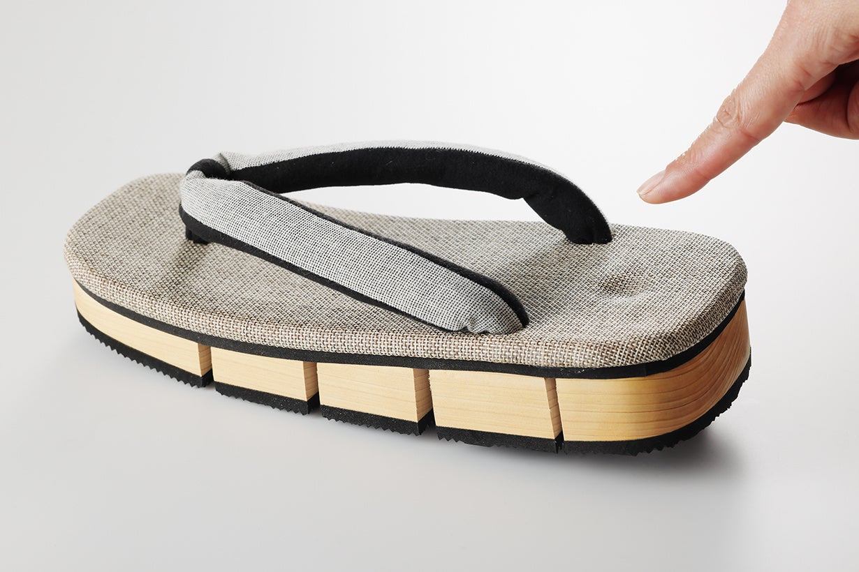 下駄が「しなる」ことにより足への衝撃を吸収・分散し、長時間履いても足が疲れず痛くなりにくい異次元の履き心地を実現しました。