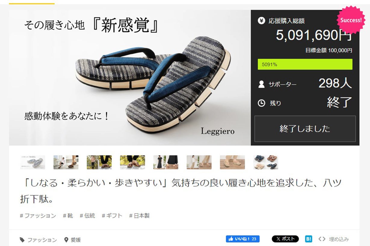 八ツ折下駄「Leggiero(レッジェーロ)」は、2023年に応援購入サービスMakuakeにてデビューを果たし、おかげさまで多くのサポーターの皆様にご購入いただき大きな反響をいただくことができました。