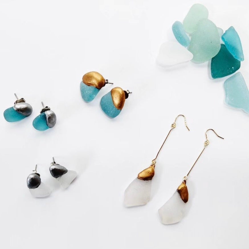 漆芸家・修復士の漆原早奈恵さんが、ひとつひとつ作る漆のアクセサリー。若い方にも漆を気軽に取り入れるきっかけにしてほしいという想いが込められています。シーグラスを用いたアクセサリーは、金継ぎに着想を得て、漆原さん自らが島の浜辺に漂着したシーグラスを集めて作られています。可憐なうるし花のアクセサリーは、時を重ねながらより鮮やかに、色艶を増していきます。漆の変化を楽しみながら世代を超えて長く愛用したいアクセサリーです。