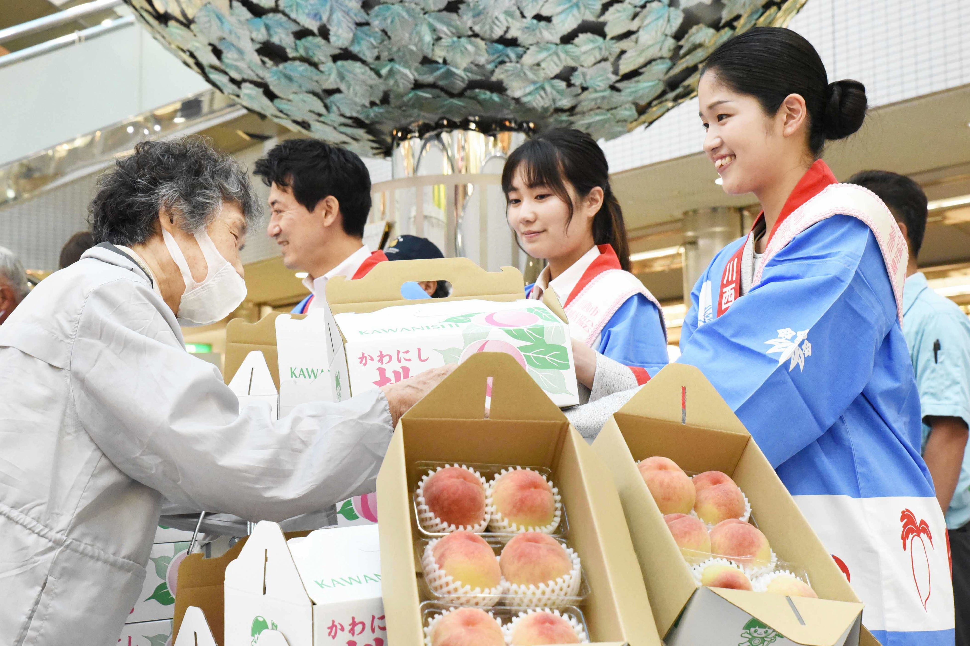 6月22日、アステ川西ぴぃぷぅ広場(栄町25-1)で川西市特産「桃の即売会」が開かれた(主催:市農業振興研究会)。