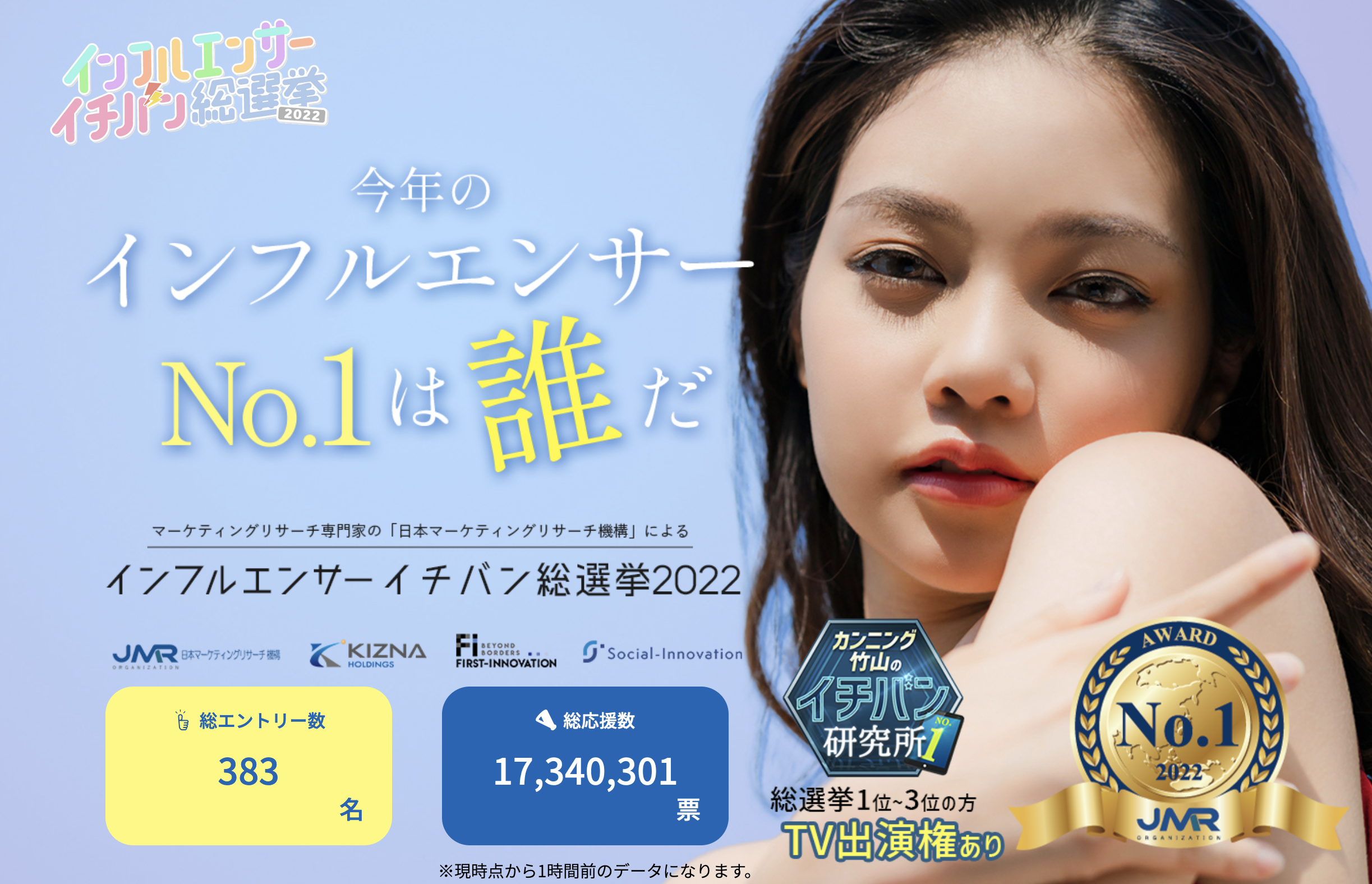 エントリー数383名、応援投票数17,340,301票を突破!【インフルエンサーイチバン総選挙2022】