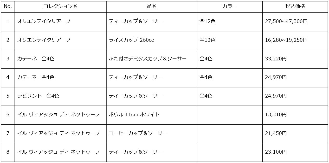 また期間中ヴェンキ3店舗(銀座店、Otemachi One店、日本橋髙島屋S.C.店)では、ジノリ1735を代表するコレクションのひとつオリエンテイタリアーノがディスプレイされます。