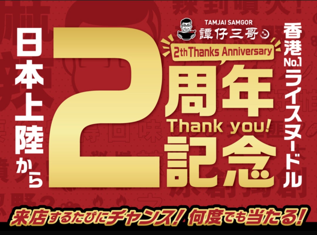 香港No.1※1ライスヌードル店 タムジャイサムゴー 日本上陸2周年を記念し、何度でもその場で当たる『豪華プレゼントキャンペーン』を開催! ~2024年4月15日(月)から4月28日(日)まで実施~