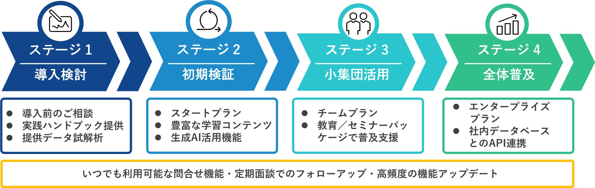 当社はこれまで、生成AIによる解析支援機能の実装を含めたツールの高機能化を図ってきましたが、さらに今回ユーザー企業での機械学習の活用推進をサポートする体制を強化しました。