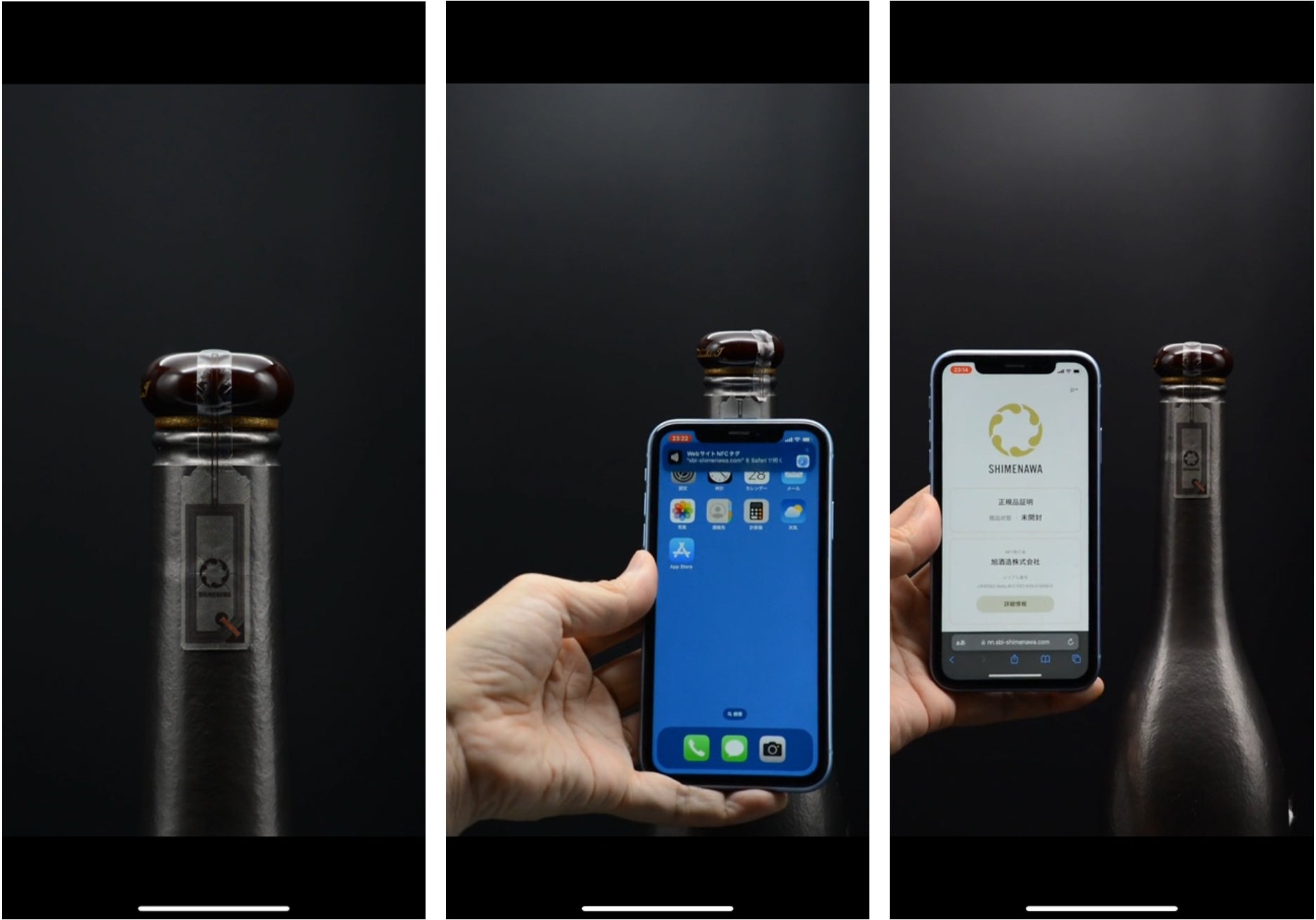 商品(現物資産)ひとつ一つにセットされるNFCタグに記録されている固有IDと、ブロックチェーン上に改ざんができない状態で記録される“いつ”、“どこで”、“誰が醸造した日本酒”かのデジタル情報が強固に紐付けされることで、その日本酒の醸造元・酒造会社を証明します。