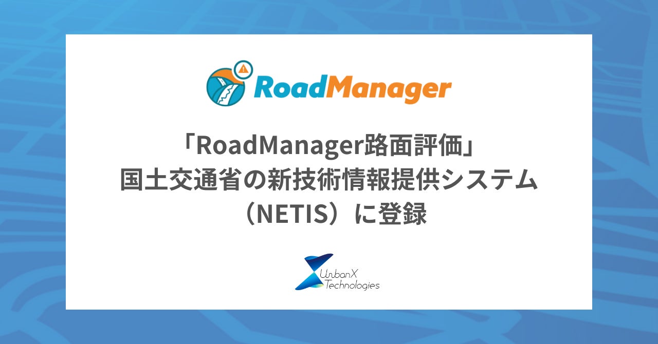 「都市インフラをアップデートし、全ての人の生活を豊かに。」をミッションに掲げる株式会社アーバンエックステクノロジーズ(本社:東京都渋谷区、代表:前田 紘弥、以下 アーバンエックス)が提供する、スマートフォンを用いた簡易路面性状評価システム「RoadManager路面評価」が、国土交通省の新技術情報提供システム(以下、NETIS)に登録されました。