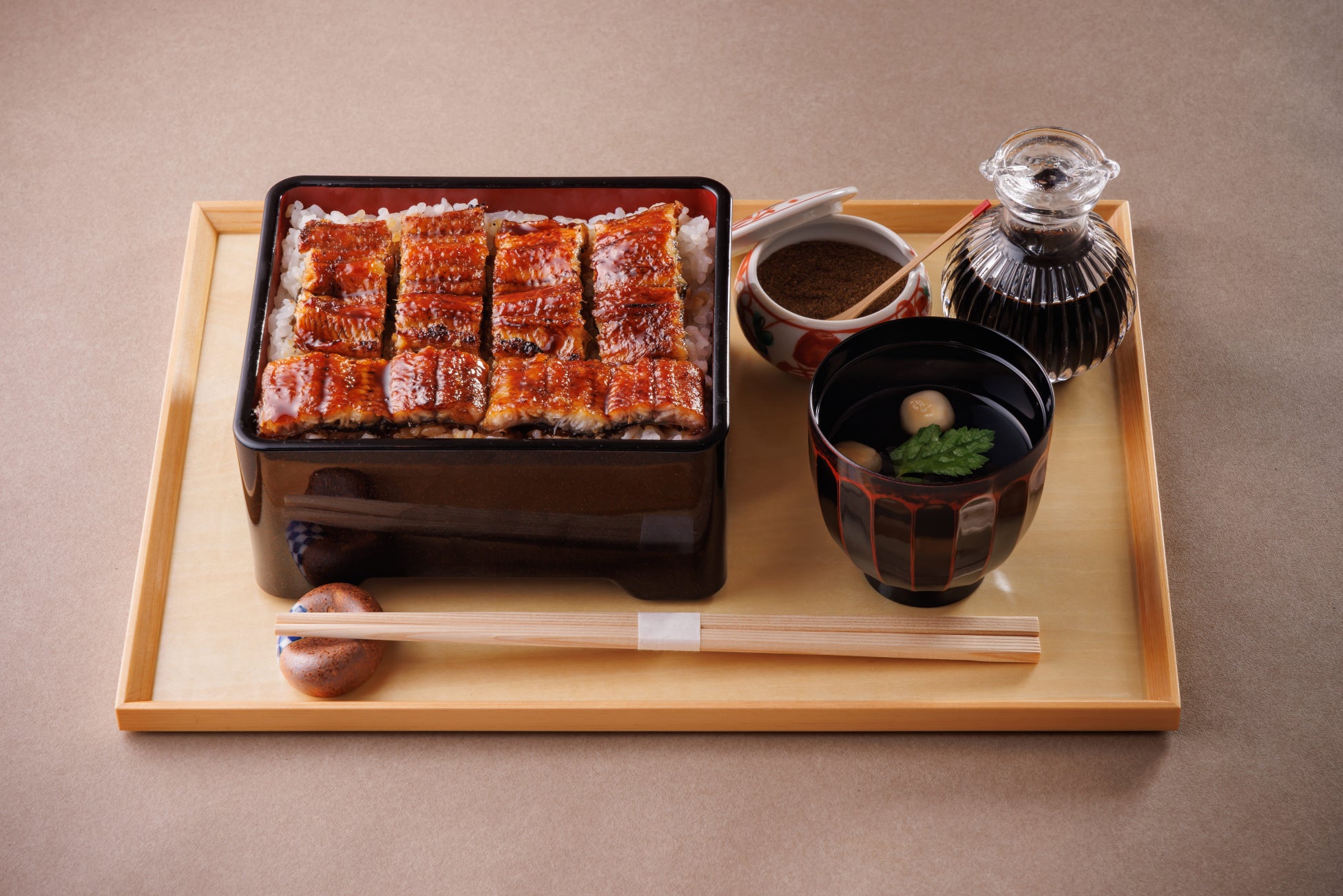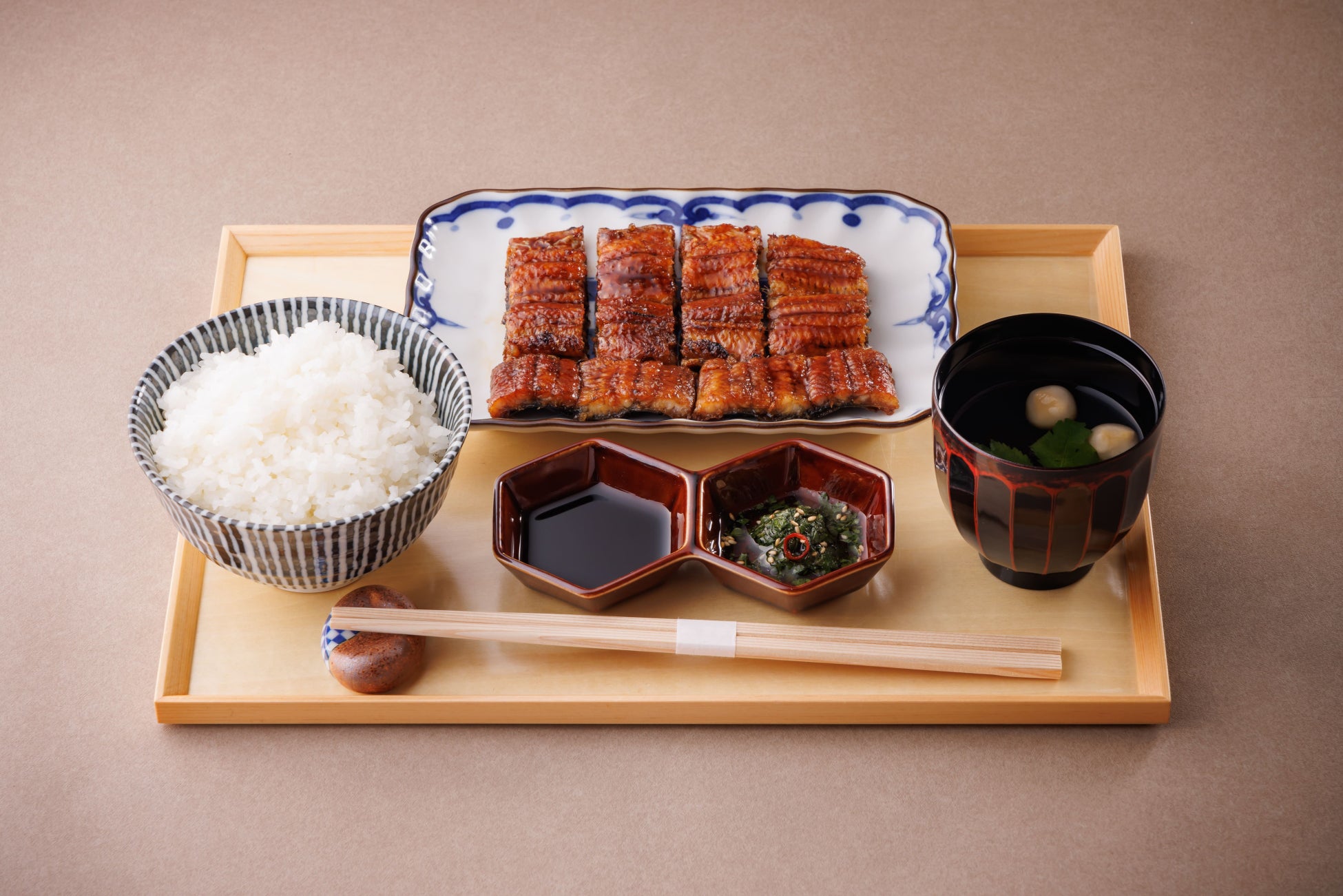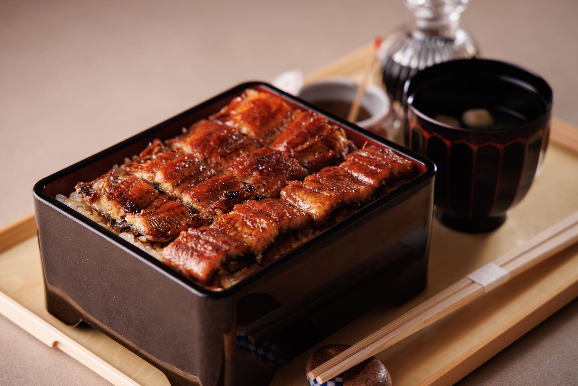 お吸い物や、ひつまぶしに使用するお出汁は高級和食店でも使われる鮪(まぐろ)の節を使用。鰹節よりも上品な味わいで高級和食店で味わえるような非日常を楽しんで頂けます。