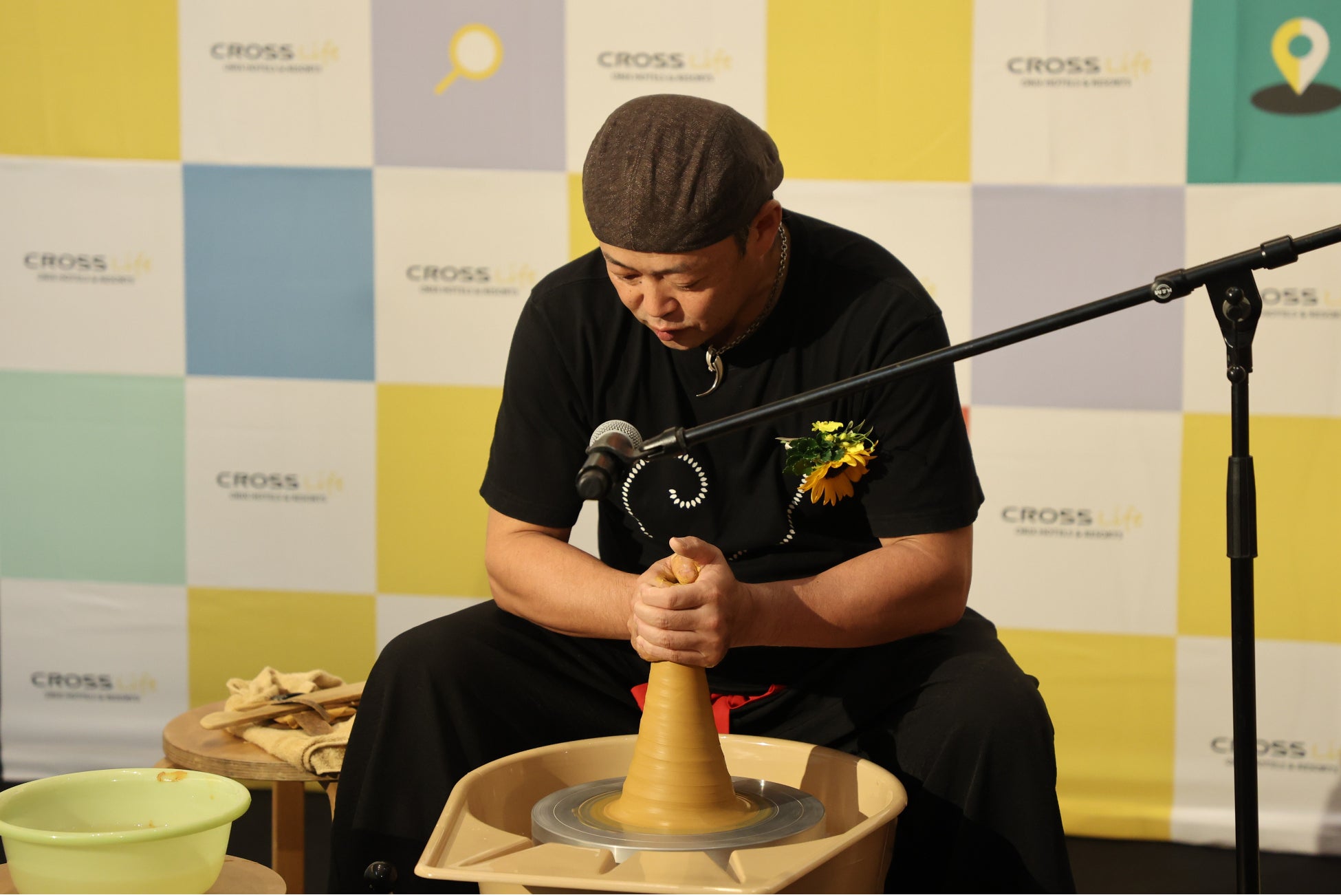 クロスライフの3つのブランドコンセプト(「Play with Local ~ 地域と一緒に」「My 3rd Place ~ 自分らしい居場所」「360°Life(スリーシックスティライフ)~自由なライフスタイル」)のうち「Play with Local」に焦点を当て、福岡の伝統工芸である小石原焼の窯元による、伝統技法の模様入れ「飛びかんな」を含むろくろ回しと、新進気鋭のアーティストVIDEOTAPEMUSICが手がける映像音楽作品を融合させた「Play with Local Cross-Performance」のライブパフォーマンスを披露しました。地域に伝わる伝統と現代の革新がクロスすることで、既成概念にとらわれない自由な発想やライフスタイルが体感可能な場所であるクロスライフの世界観をお届けしました。