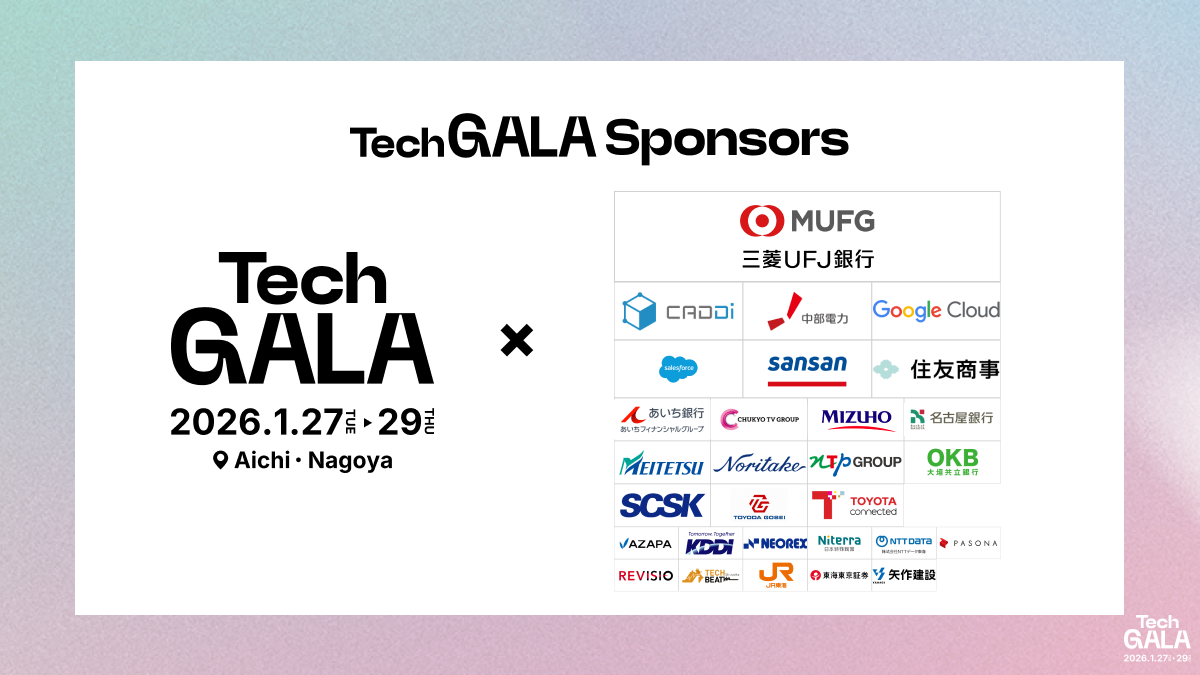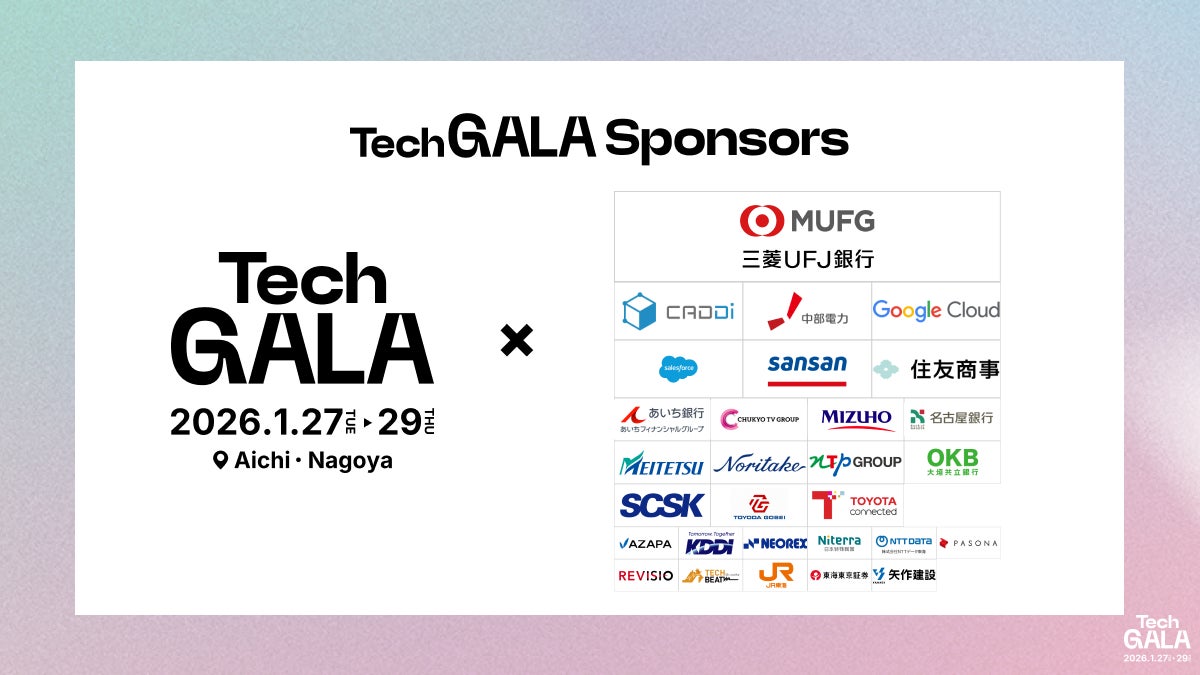 Central Japan Startup Ecosystem Consortium主催 テクノロジーの祭典「TechGALA Japan 2026」のスポンサーとして29社の企業が決定しました。
