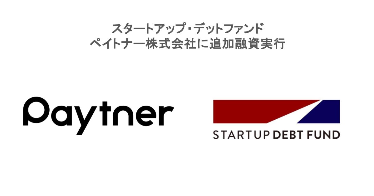 スタートアップ・デットファンド、ペイトナー株式会社に追加融資実行