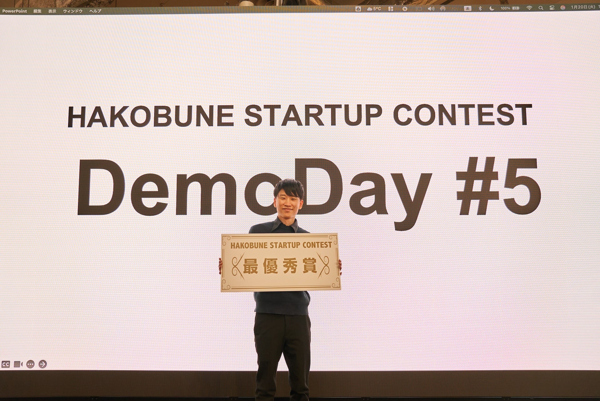 プレシードおよびシード期に特化した独立系VCであるHAKOBUNEは、これから起業を目指す若者や社会人が短期間で飛躍的に成長できるインキュベーションプログラム「HAKOBUNE STARTUP CONTEST」の5th Batch Demo Day(成果発表会)を開催しました。2025年10月に始まった5th Batchでは前回に引き続き多数の応募が寄せられ、その中から選抜された25名がプログラムに参加。最終的に事前審査を通過した5名が、厳選されたスタートアップ投資家や関係者の前で事業構想を発表しました。