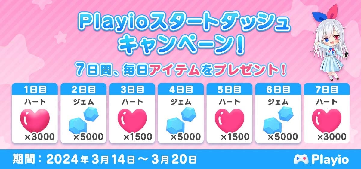 さらに公式X(旧Twitter)@Playio_ioにて本日より7日間連続で「アイテムプレゼントキャンペーン」を実施致します。