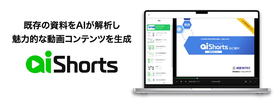 AIとクラウドを活用し様々な業種のDXを提案する株式会社エージェンテック(東京都千代田区、代表取締役社長:金淙採)は、2025年1月16日より動画生成AIツール「AI Shorts(エーアイ・ショーツ)」のサービス提供を開始いたします。