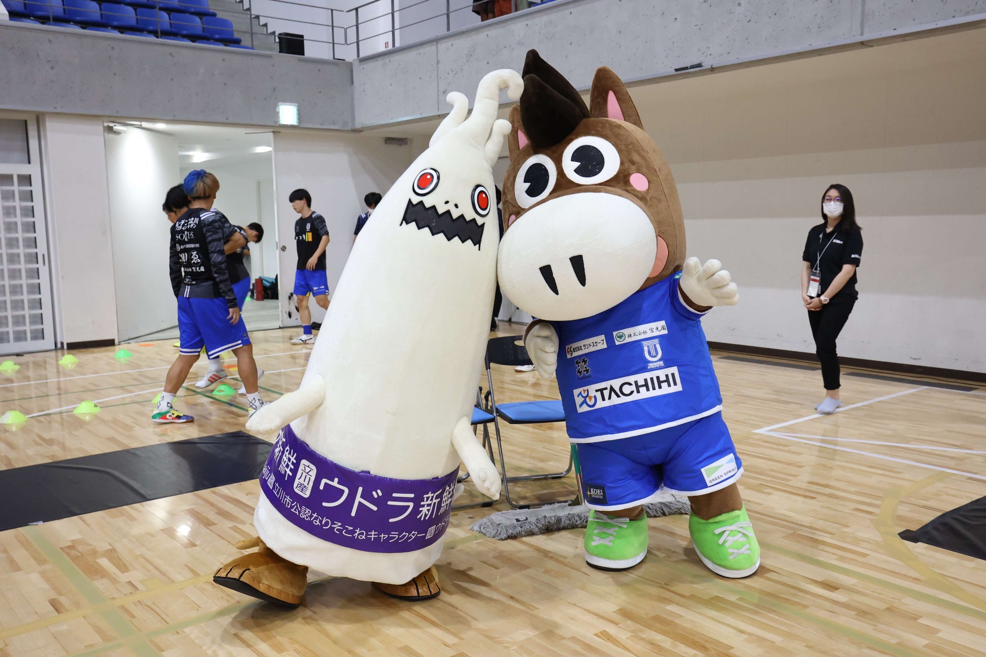 【恐竜襲来!】立川アスレティックFCの試合に全長8mのティラノサウルスがアリーナ立川立飛に!