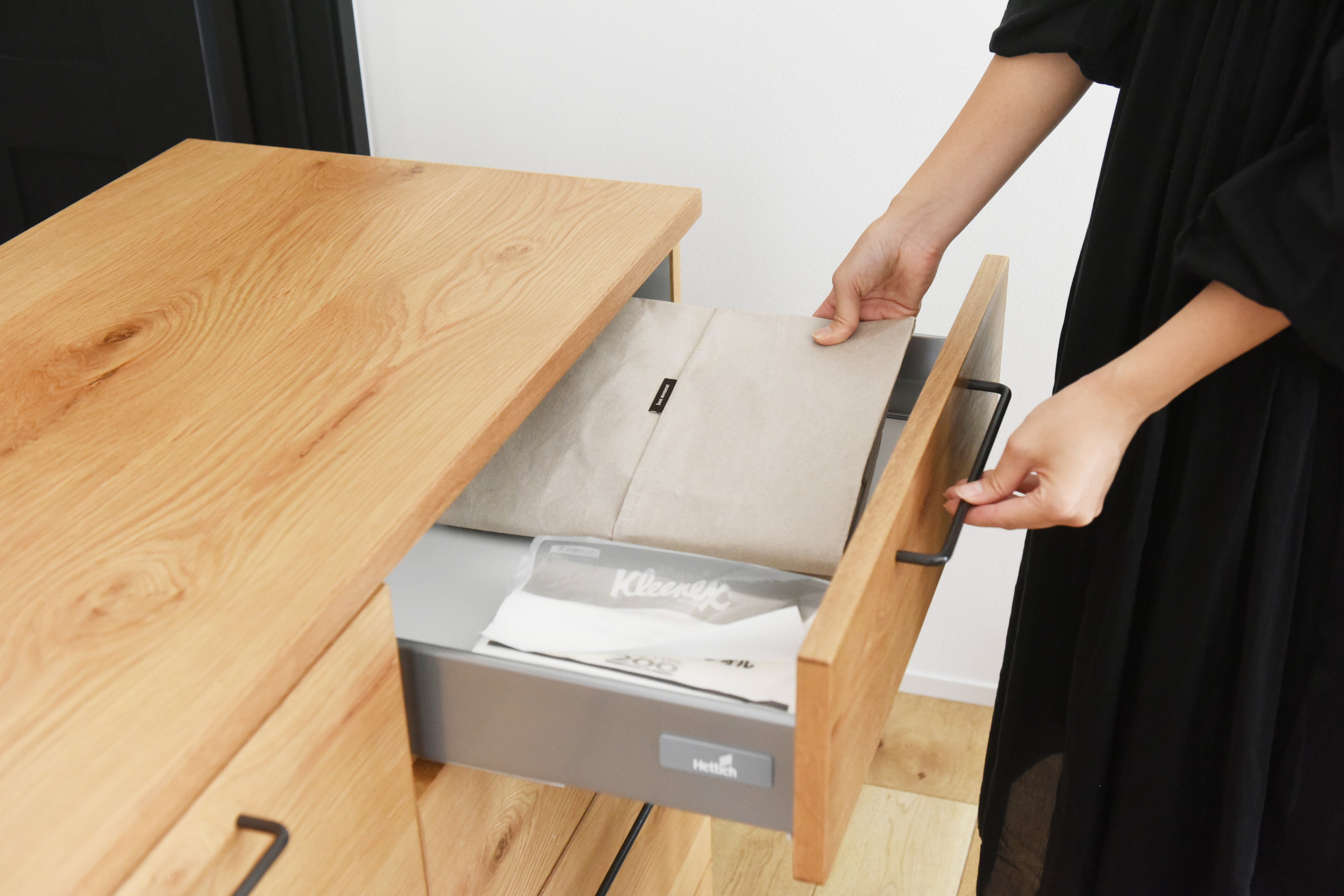 このペーパーバッグに入れるだけで、考えないですっきり収納を叶えてくれます。