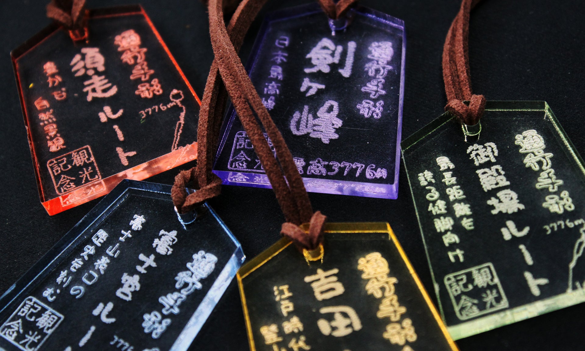 富士山の登頂ルートを象徴する五種の「通行手形」