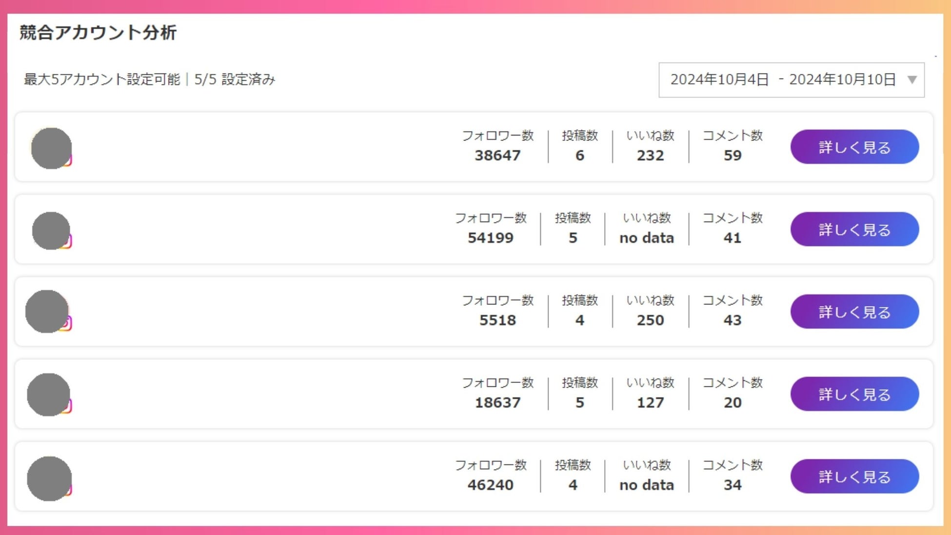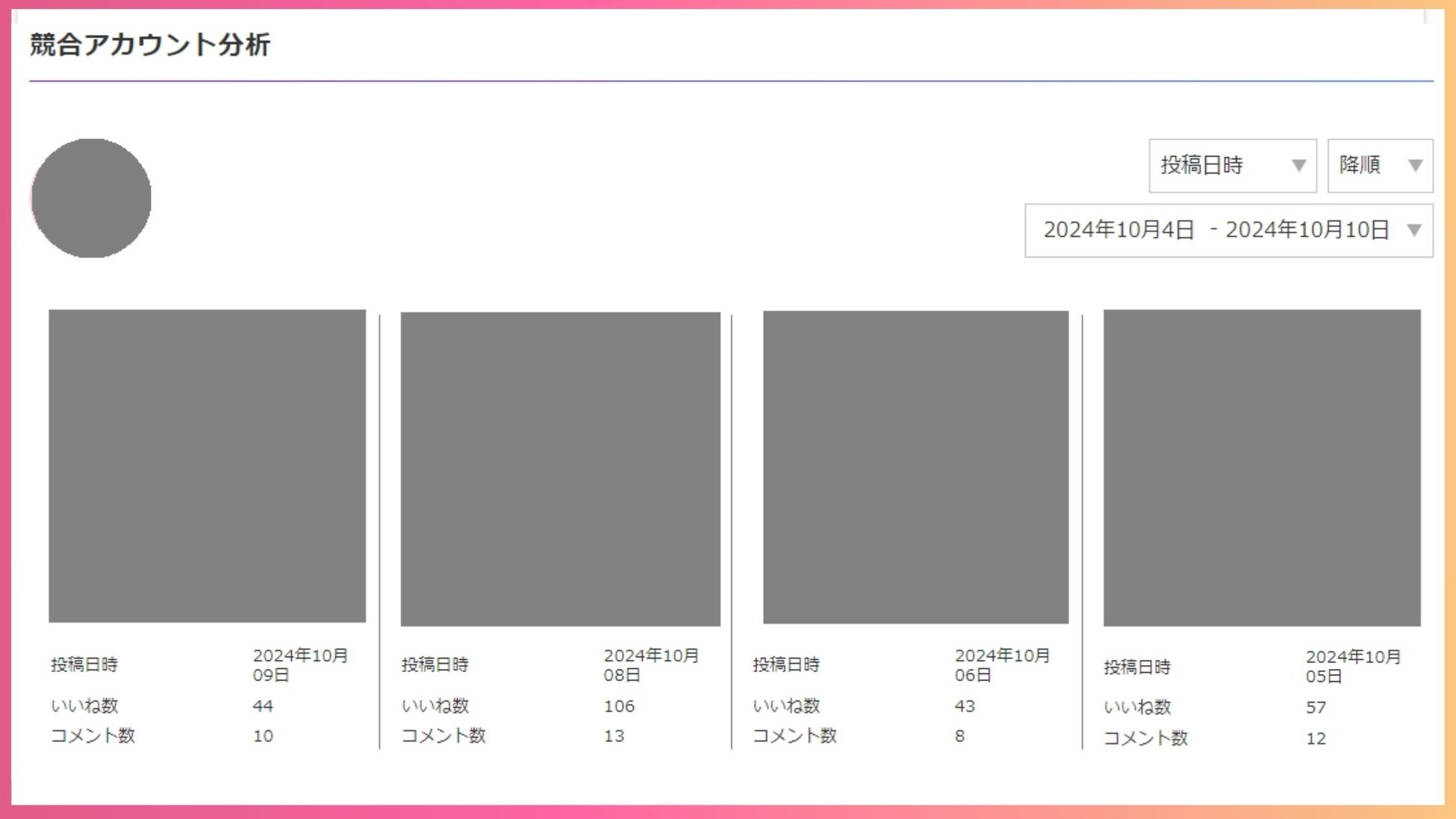 目指したいアカウントやベンチマークしているアカウントの投稿内容分析が行えます。