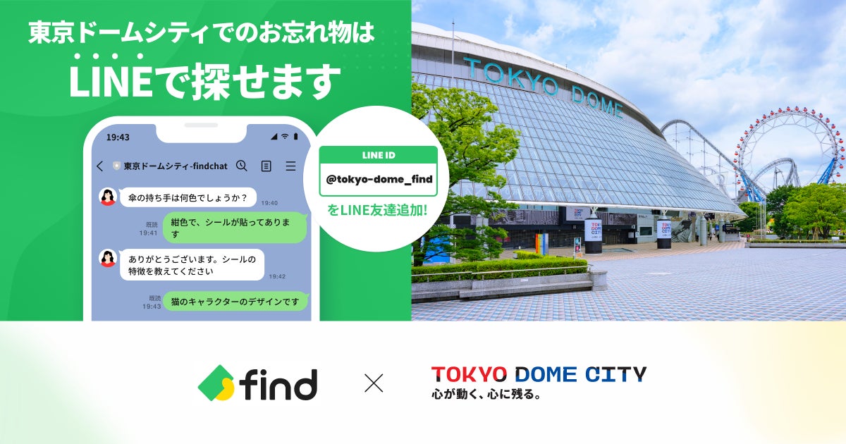 株式会社東京ドーム(本社:東京都文京区後楽、代表取締役社長COO:長岡 勤)は、株式会社find(本社:東京都中央区、代表取締役CEO:高島 彬、以下「find」)が提供する「落とし物クラウドfind」を導入します。