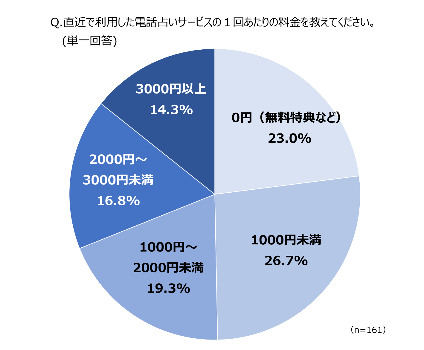 Q2. 直近で利用した電話占いサービスの1回あたりの料金を教えてください。(単一回答)