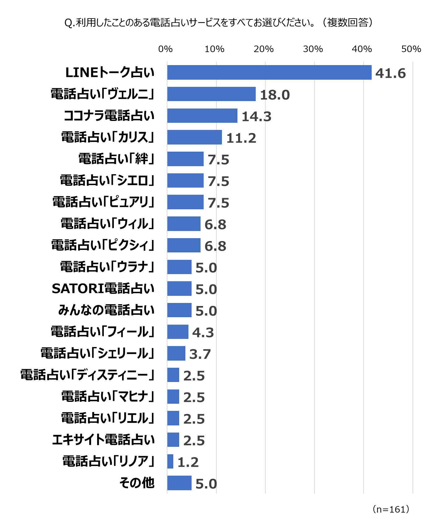Q1. 利用したことのある電話占いサービスをすべてお選びください。 (複数回答)