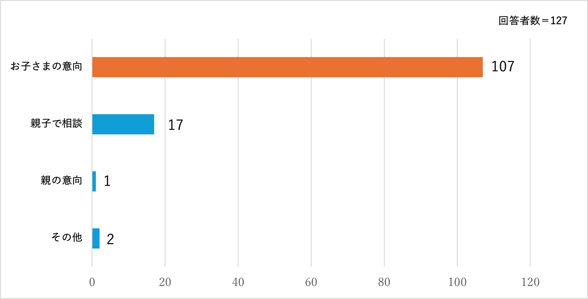 「お子さまの意向」、「親子で相談」を含めると、約9割のお子さまが自分で部活動を決めており、子どもの意見を尊重するケースが多いという結果になりました。