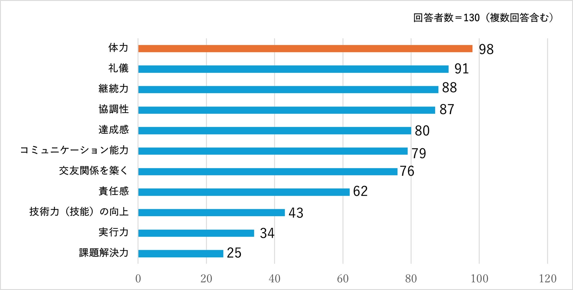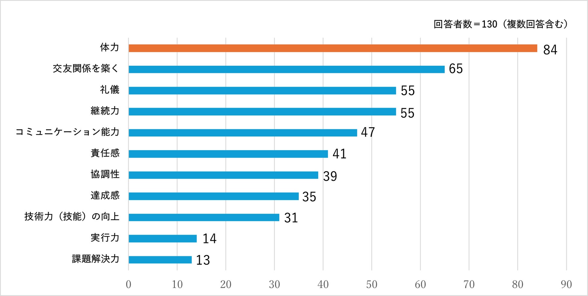部活動をとおして特にお子さまに身に付けてほしいことを調べた結果