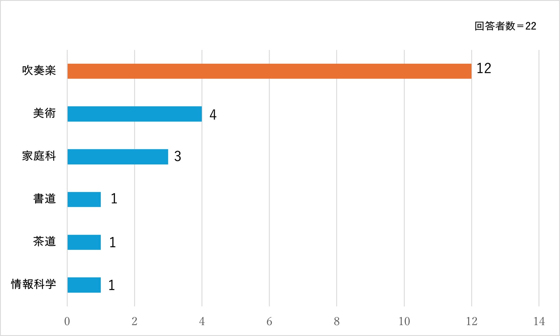 約5割が、吹奏楽と回答しました。続いて美術が2位、家庭科が3位という結果になりました。