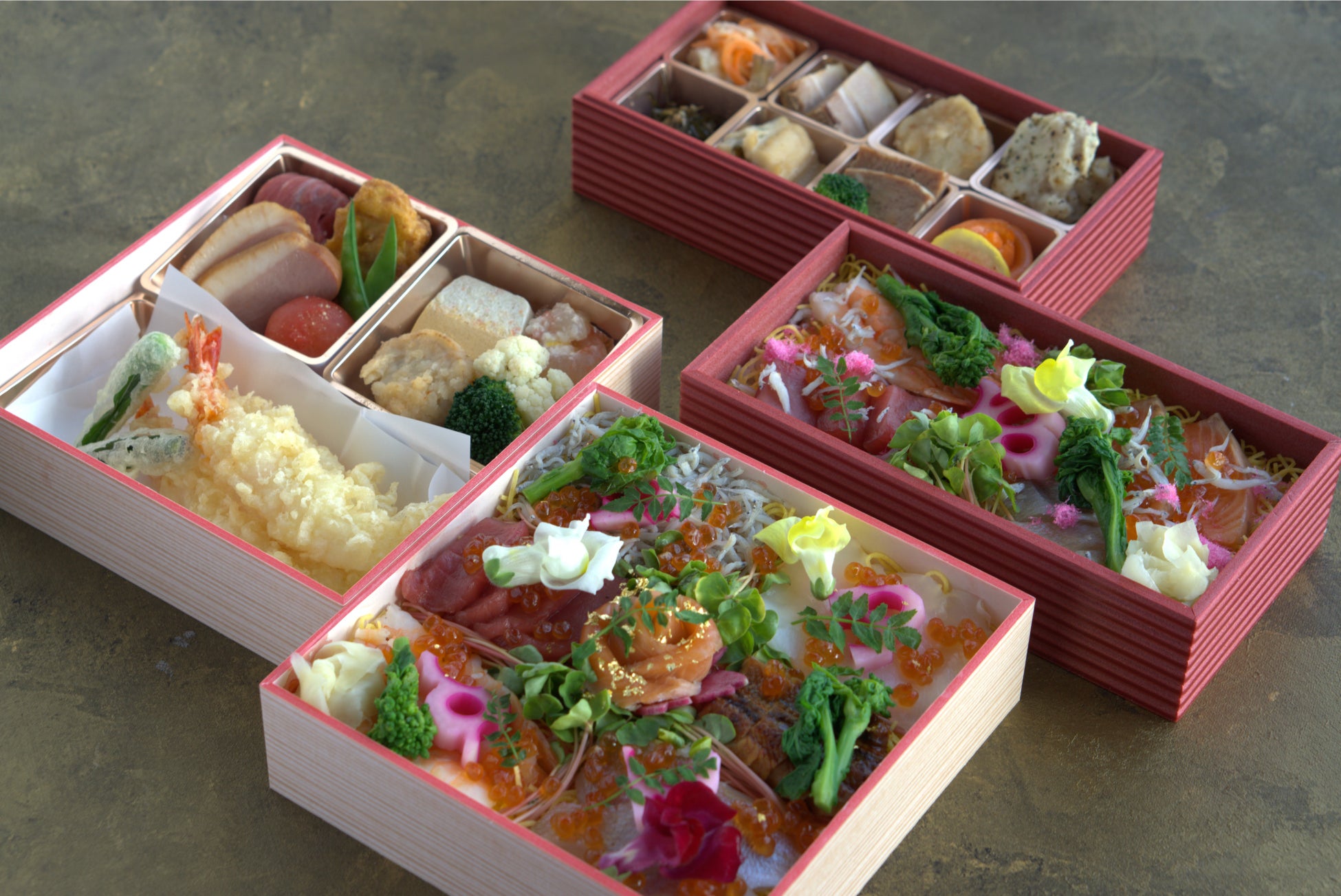 ホテル金沢橋本料理長監修「特選海鮮ひなちらし」は、”福が重なるように”という願いを込めて、重箱に詰めてご提供いたします。