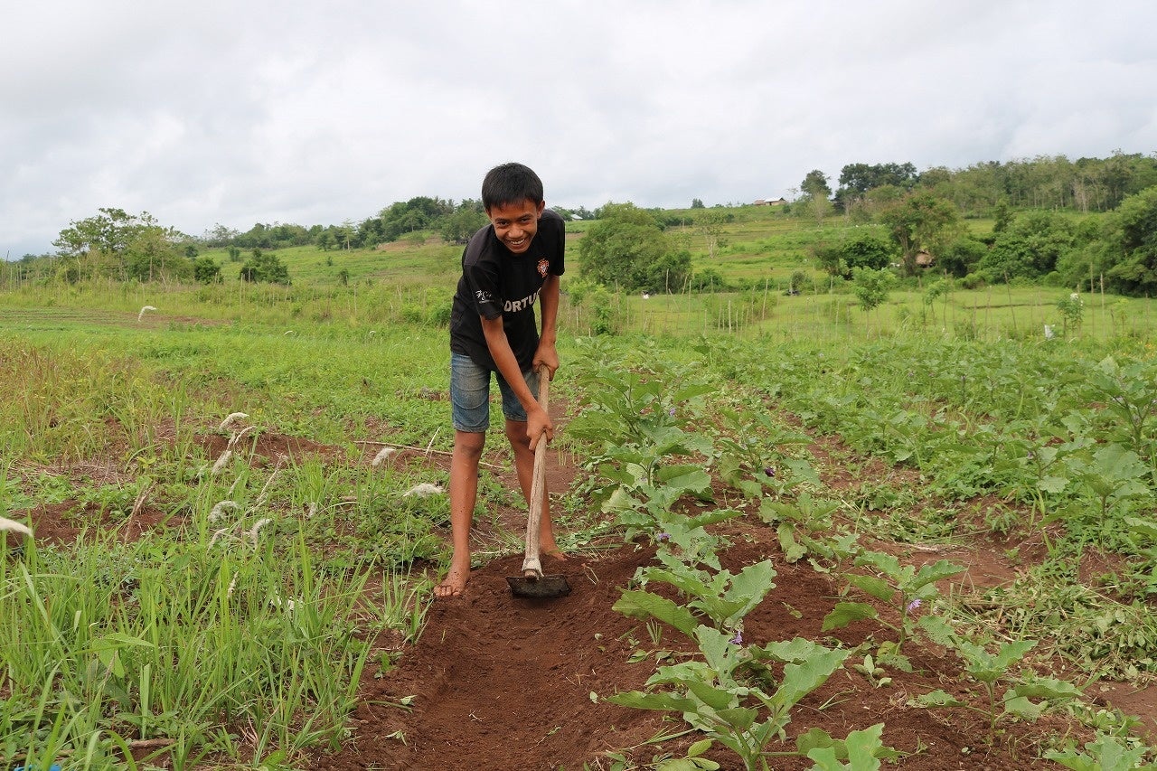 研修を開催して野菜作りをしたことのない村の人たちが野菜作りを学びます。