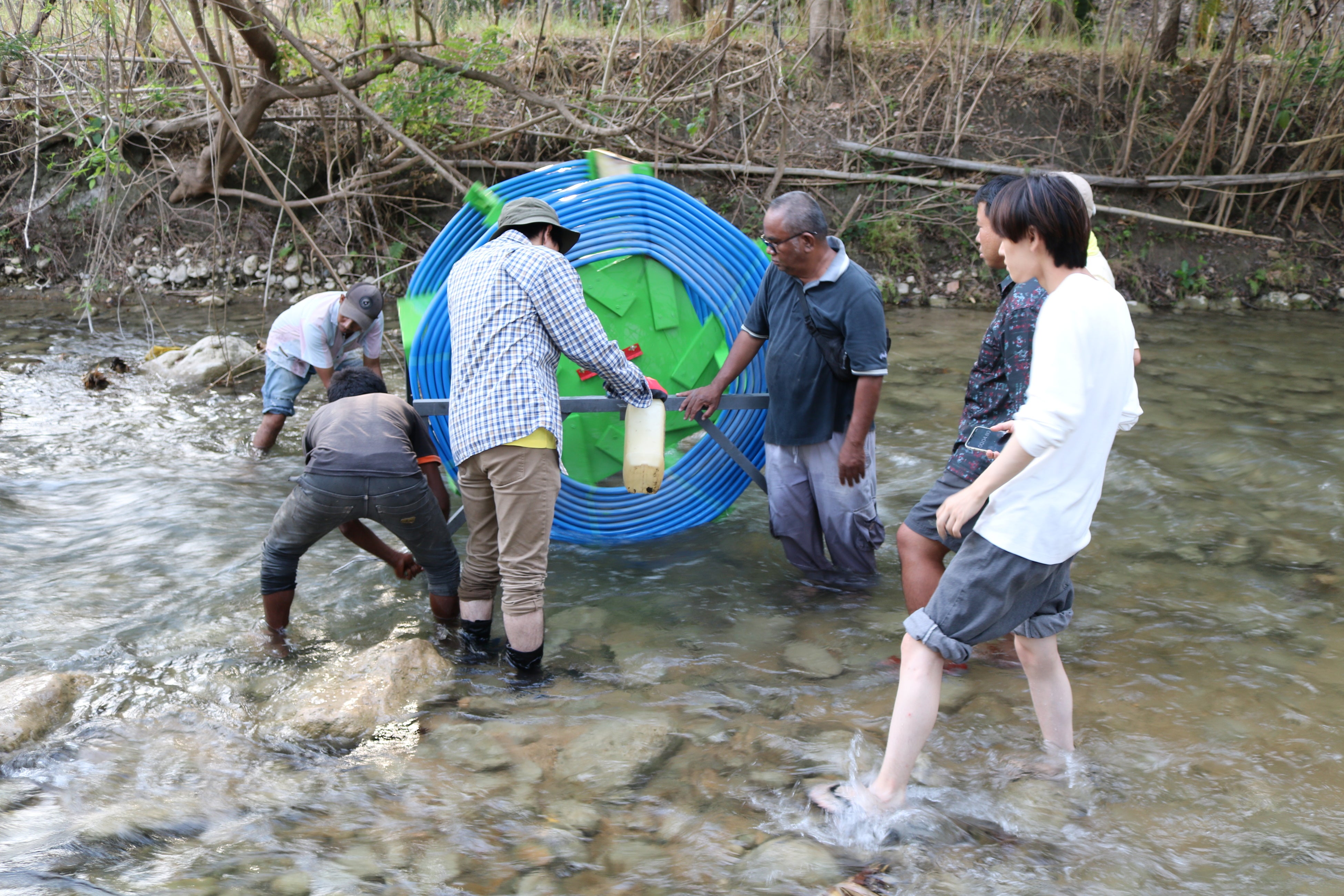 水へのアクセスが困難な地域で使えるよう川の流れて水を汲み上げるポンプを開発しています。