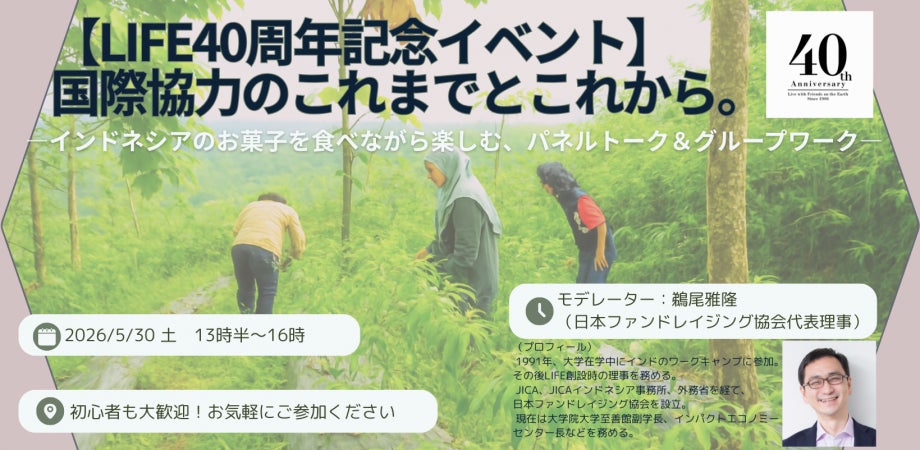 この40周年を記念して、【LIFE40周年記念イベント】国際協力のこれまでとこれから。を開催します。このイベントでは、来場者の皆さまと一緒に国際協力について考えます。皆様のご参加を心よりお待ちしております。