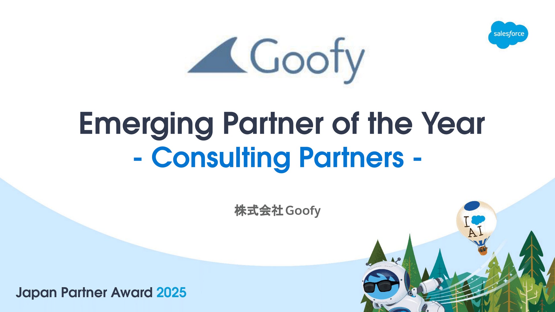 このたび、株式会社Goofy(本社:東京都中央区日本橋/代表取締役:山本 恭平・玉木 光)は、「Salesforce Japan Partner Award 2025」における、「Emerging Partner of the Year」を受賞しました。