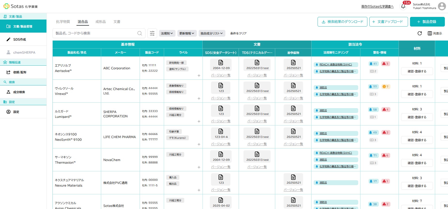 あわせて以下の主要新機能を実装し、法規制調査・SDS作成・必要文書のサプライチェーンでの情報伝達までをSotas化学調査で完結できるよう進化しました。