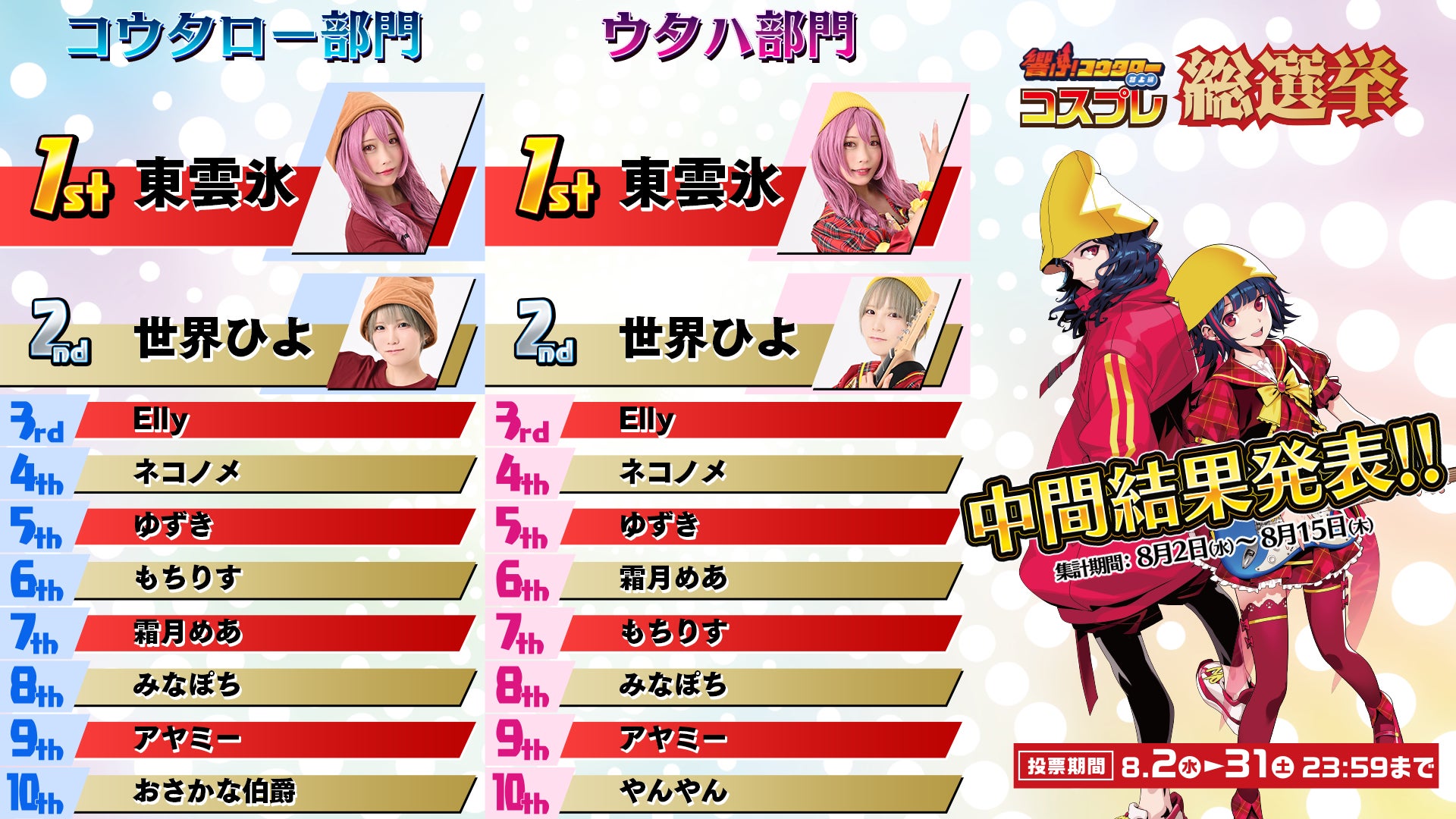 コスサミ×コウタロー「響け!コウタローコスプレ総選挙」の中間結果を発表!